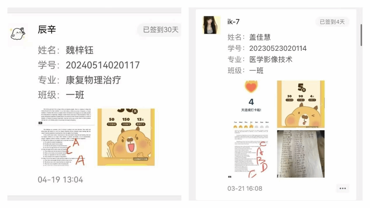 本次活动自启动以来,吸引了众多同学的积极参与,本次学习打卡活动共持续30天,参与人数近200人。参与活动之初,大多数学生只是抱着尝试的心态,但随着每日坚持打卡学习,从基础的单词背诵、听力练习,再到短文写作,在日复一日的积累中,发现自己的英语能力得到了显著提升,不仅词汇量有了明显增加,阅读英文文章时变得更加轻松自如,同时也养成了良好的英语学习习惯。