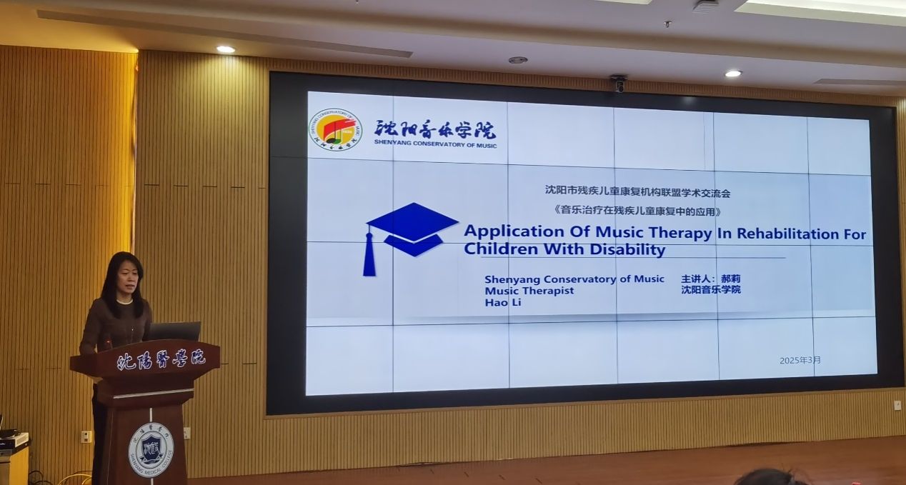 本次会议邀请了沈阳音乐学院音乐科技系郝莉副主任做了题为《音乐治疗在残疾儿童康复中的应用》的学术分享,郝莉副主任是音乐治疗学博士、副教授,同时也是澳大利亚国家注册音乐治疗师、世界音乐治疗师协会会员、世界音乐教育协会会员。郝主任在此次分享中详细介绍了国内外音乐治疗在残疾儿童康复领域的发展现状,并结合音乐治疗案例进行深入分析,让与会人员深切体会到音乐治疗在残疾儿童康复中的独特魅力与显著效果。并且报告过程中还设置了现场互动环节,与会人员积极参与,现场气氛热烈。