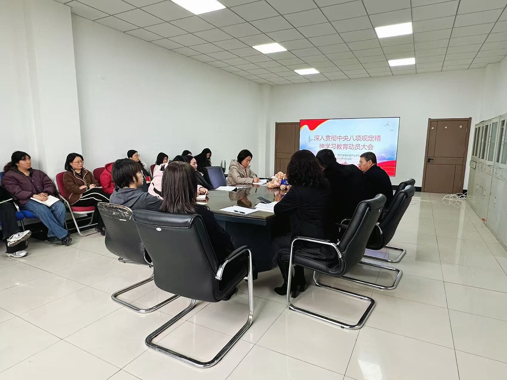为贯彻落实党的二十届三中全会部署,按照《中共中央办公厅关于在全党开展深入贯彻中央八项规定精神学习教育的通知》(中办发〔2025〕15号)精神及省委、市委有关文件要求,2025 年 3 月 26 日,beat36官网登录入口召开了深入贯彻中央八项规定精神学习教育动员大会。此次大会由beat36官网登录入口党总支书记周东升主持,全体教师参会,旨在全面传达上级相关精神,并对学院后续的学习教育工作进行安排。