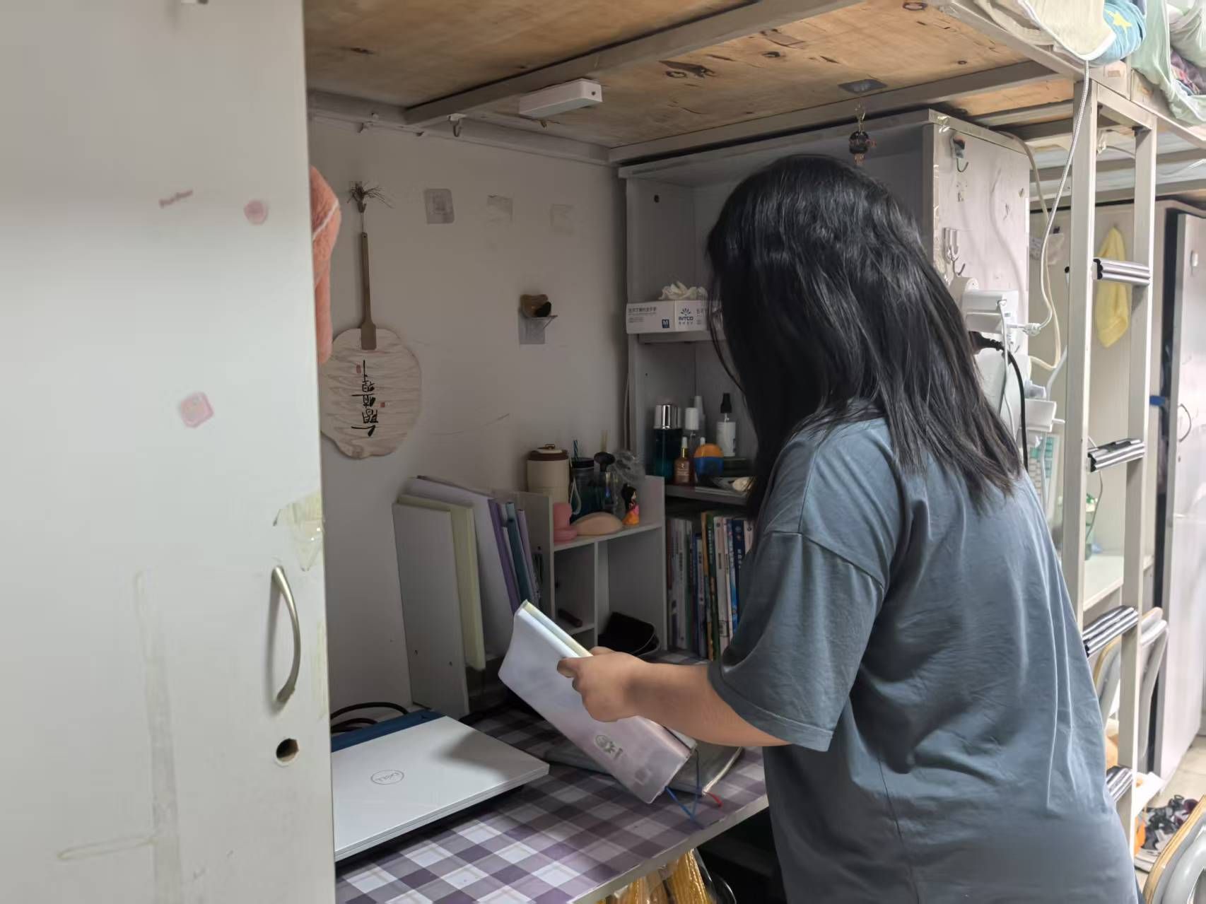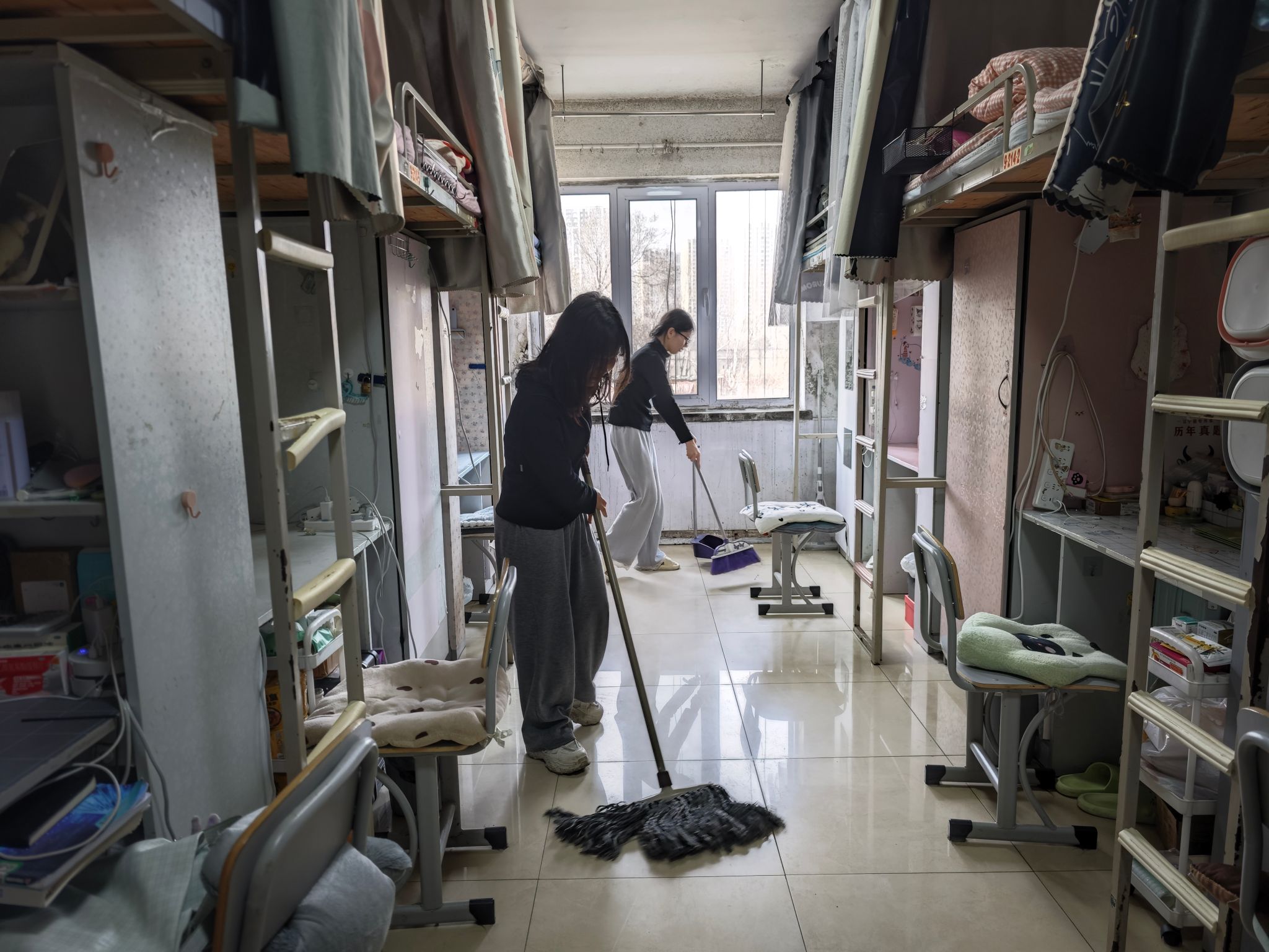 在辅导员的协调下,学生分工协作,整体环境得到极大改善。学生积极参与寝室清洁工作,清扫过程中,认真擦拭门窗、地面,清理墙角积尘;床铺整理严格按照标准执行,做到被褥叠放整齐、物品摆放有序。严格遵循“四无标准”,全面清除室内异味,清理杂物堆积。