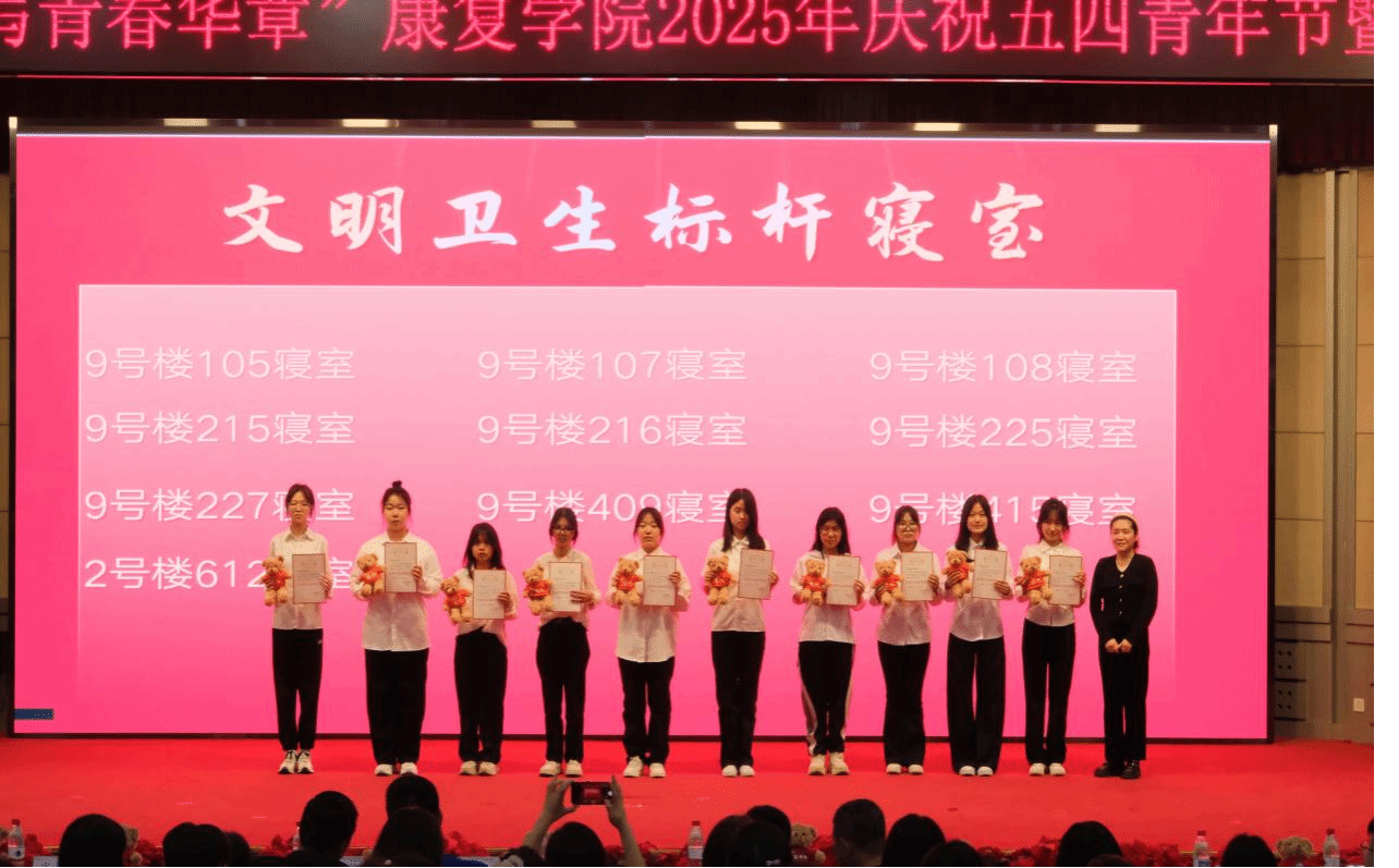为弘扬五四精神,表彰在2023-2024学年中表现突出的优秀学生,激励康复学子为实现中华民族伟大复兴的中国梦不懈奋斗,beat36官网登录入口于2025年5月9日召开“弘扬五四精神 谱写青春华章”庆祝五四青年节暨学生表彰大会。学校学生工作处、团委等部门领导、中国狮子联会英才服务队领导、beat36官网登录入口全体教师及200余名学生参加本次表彰大会。